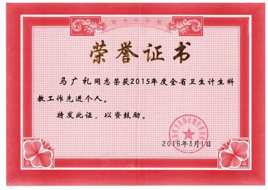 近日,河南省卫生和计划生育委员下发《河南省卫生计生委关于表彰2015年度卫生计生科教工作先进单位和先进个人的通知》(豫卫科教〔2016〕10号)。我校教师马广礼获得“2015年度河南省卫生计生科教工作先进个人”荣誉称号。